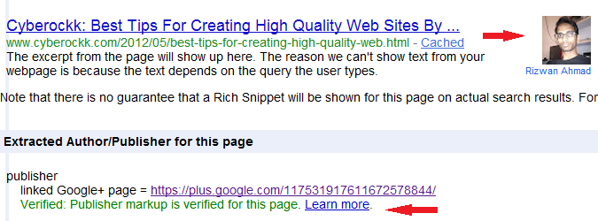 Now you have to check your authorship is verified or not for this go to Rich Snippet Tool and enter your blog or site URL or any page URL and click preview then you will get the Google search preview if it’s ok you will see a green message saying “Verified” As shown below.