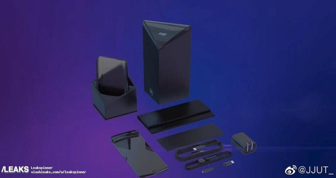 Now let’s check out what included in the box? the leaked image shows that the upcoming Motorola Razr will ship with a USB-C cable and a pair of USB-C headphones. The retail box also appears to have a stand for the phone, a charger and something like a cover for the device.