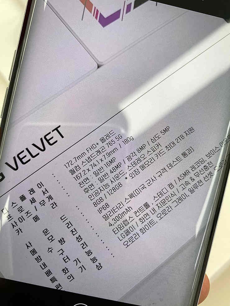 Other LG Velvet features including connectivity options include NFC, USB Type-C port, IP68, HDR10, Bluetooth 5.1, and network support 3G/4G LTE-A/5G.