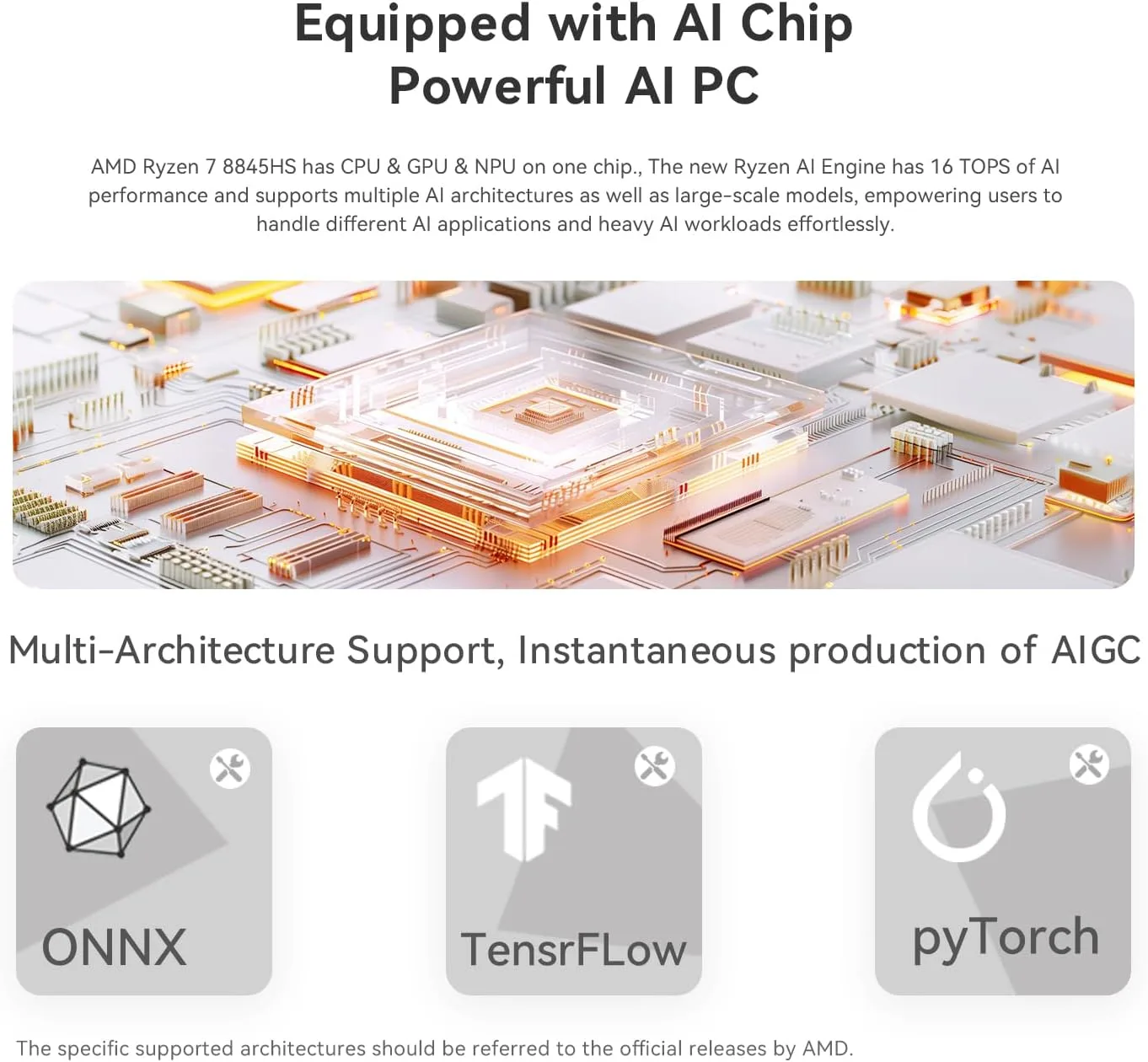 • Powerful Processors: Choose between the AMD Ryzen 7 8745HS or the slightly stronger 8845HS. Both have 8 Zen 4 cores and 16 threads, delivering excellent performance for everyday tasks like web browsing and demanding jobs like video editing or programming.