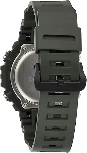 The watch has a cool, angular green resin case and matching strap, paired with a shiny stainless steel bezel for a modern look. At 47.2mm, the oversized case is bold yet tough, with scratch-resistant resin glass to handle daily bumps and scrapes. It’s built to last, and its 10-year battery life means you won’t need to swap batteries often.