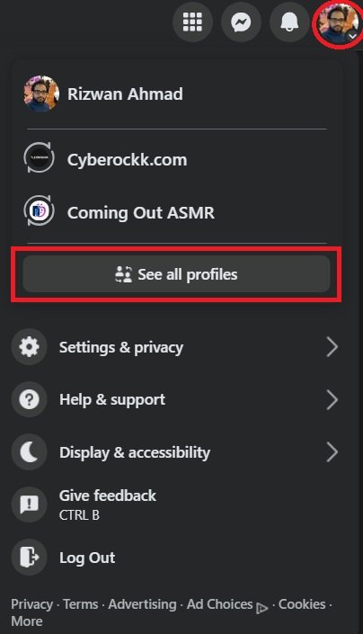 • On the right top, click on your profile photo, and then click on (See all Profiles).